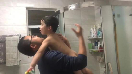 康世伟:从我吃他妈妈的醋开始,他每天就说他很爱妈妈,对着爸爸说,不爱爸爸,我不爱爸爸。就从那个点开始。我想要拍关于他的纪录片。我相信会有变化。因为我觉得我儿子一定会很爱我,那他为什么老是要说不爱,我想找出为什么?所以从那个时候开始,我就想给他洗头,然后就开始了拍摄。