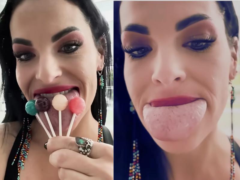 长宽均7.9cm,可同时舔4颗棒棒糖,美国女子舌头有点“方”破纪录