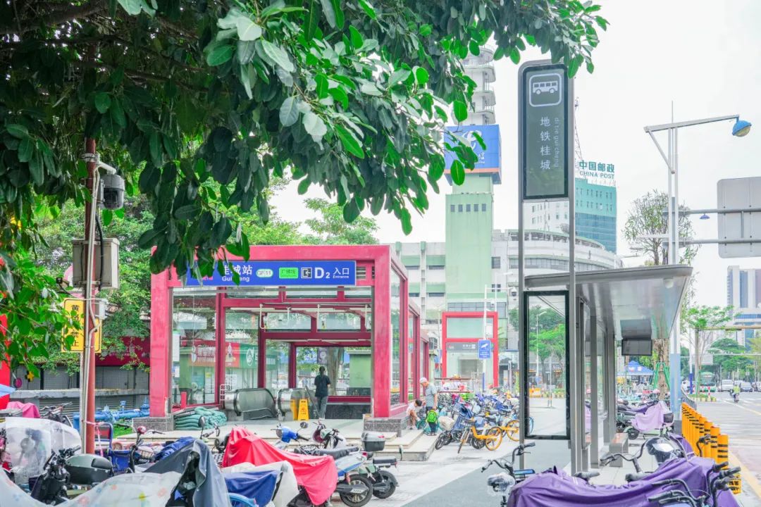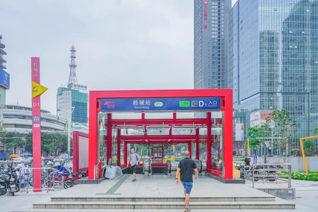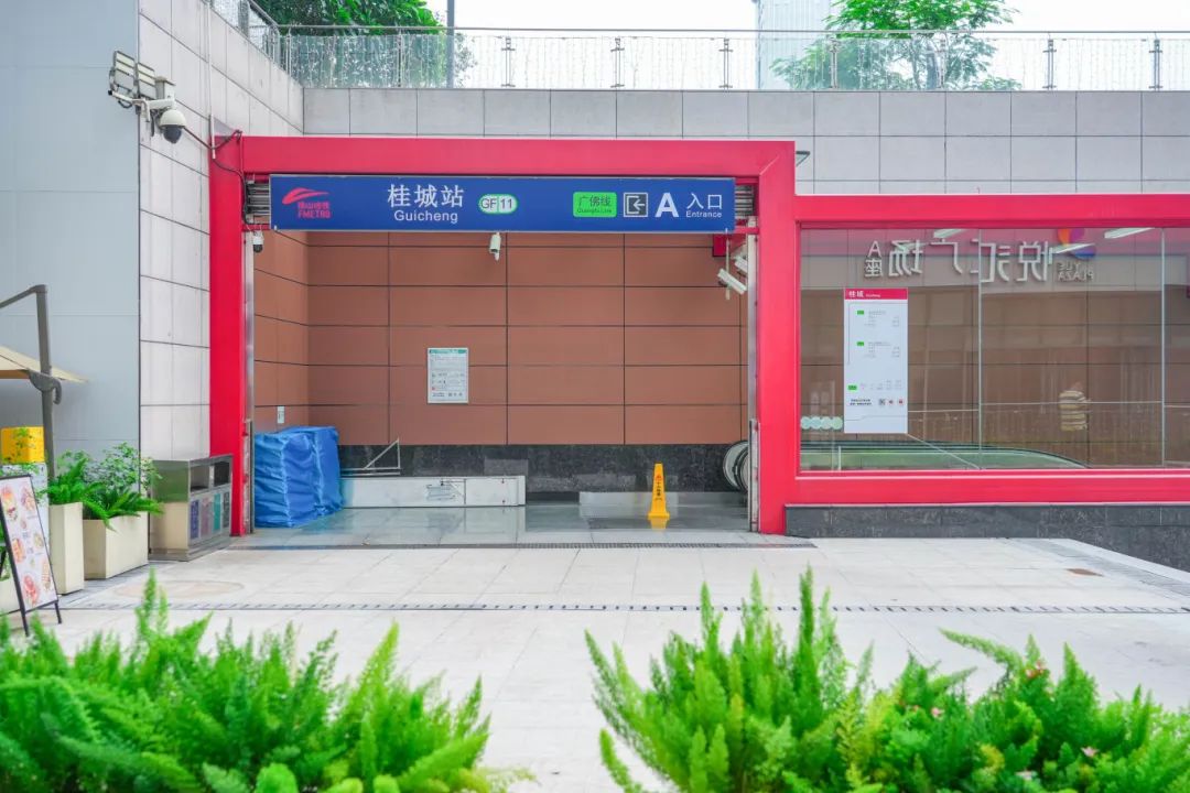 桂城站位于南桂东路和南海大道交界,该站在原已开通的A、B、D1、D2四个出入口的基础上,新加开了1个E出入口。