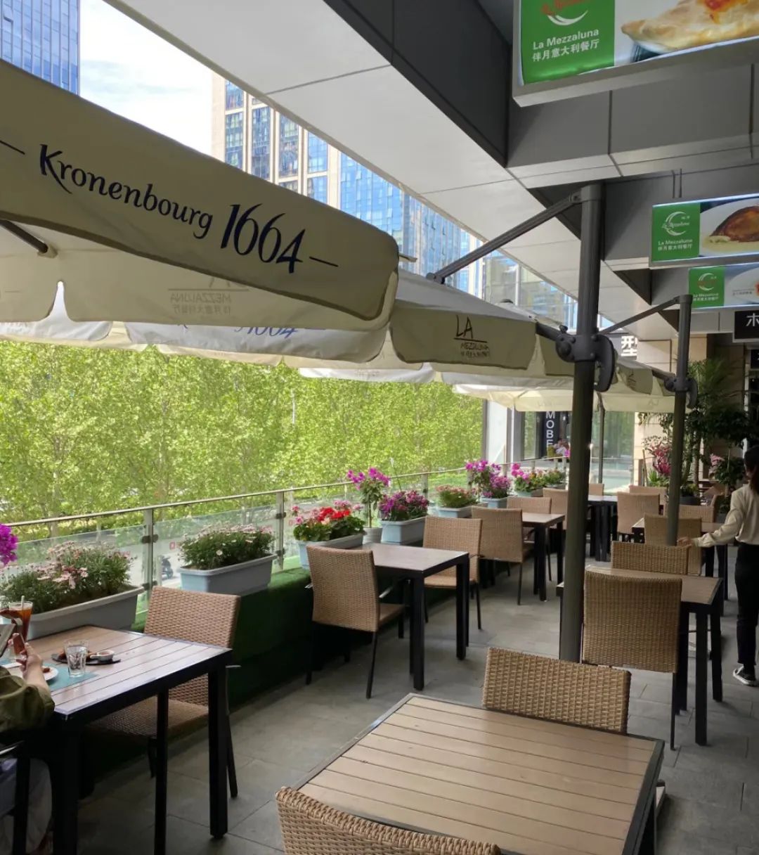 无论是晴天,还是阴天,只要天气不十分恶劣,人们都像约好了一样,走进伴月直奔露台。来这里,吃饭、办公、聊天,看楼下人来人往,别有一番情趣。