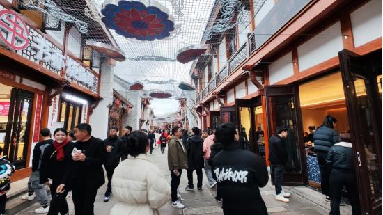 说到椒江的网红打卡街区,最爆莫过于葭沚老街,一到晚上,这里就人潮涌动,商铺熙攘。穿着时尚的年轻人、日常闲逛的上班族,穿着汉服的国风爱好者、来这吃饭的美食爱好者均汇聚在此,显示出极高的人气。“葭沚老街目前已有餐饮、潮牌等76家商户入驻,平时日均人流量在1万左右,星期六天有2万,举行活动就有十来万。”台州市椒江区城发文旅发展有限公司副总经理李超说。