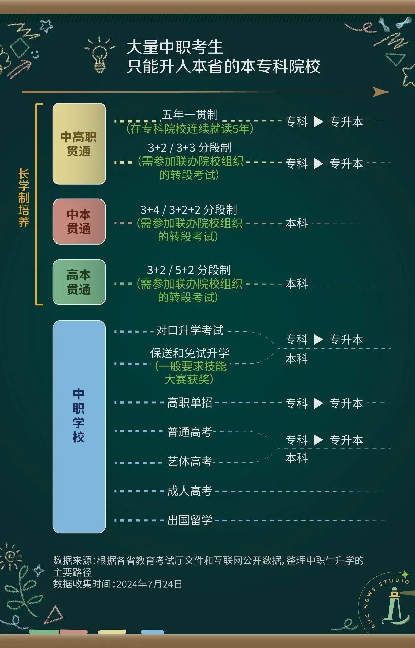 在学历贬值与认同危机之下,打通升学与融通的道路几乎是一种必然。
