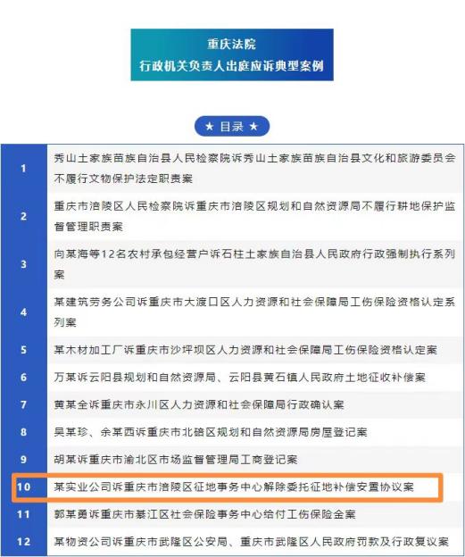 喜讯!我院一起案例入选重庆法院行政机关负责人出庭应诉典型案例