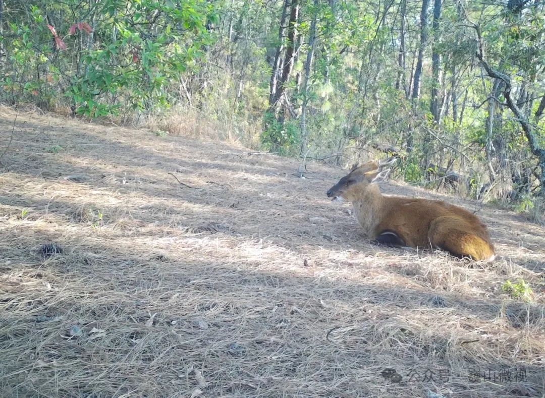 近日,大理巍山青华绿孔雀省级自然保护区管护局工作人员在分析红外相机数据时,发现了一只赤麂休息的精彩影像。