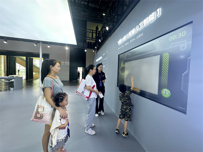 在飞象星球展区内的飞象AI课堂板块,一个“你画我猜”的小游戏,吸引了很多小朋友的目光。