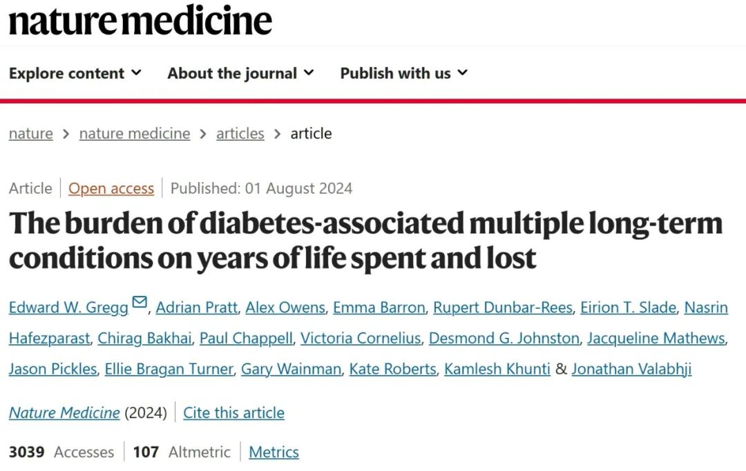 原标题:《《自然·医学》:糖尿病,真不能得!4670万人数据分析显示,1/3糖尿病患者在50岁时有至少3种共病,带病20年,少活11岁》