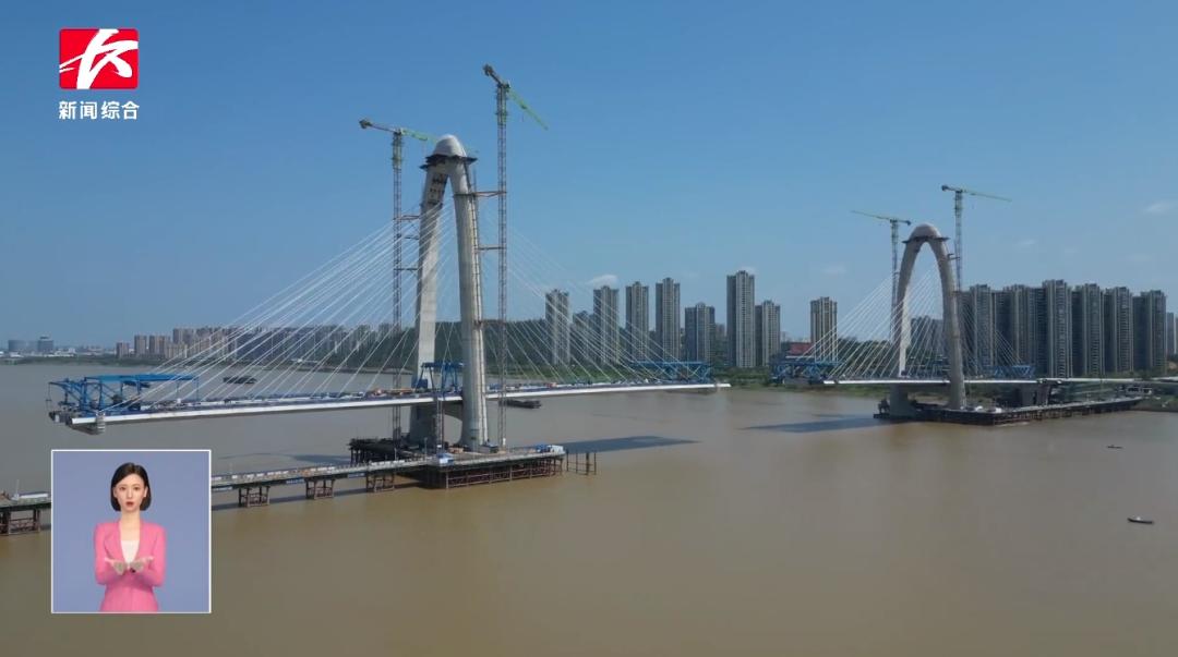本次架设完成的潇湘北路跨线桥上部结构设计为分箱断面钢箱梁,采用多箱单室钢箱梁断面设计,节段最长达到20米,最大吊重达到68吨。由于地处城区交通要道跨线交叉施工,交通疏解难度较大。项目负责人介绍,截至目前,河西、河东引桥分别已完成工程量的99%和98%以上,预计年底具备通车条件。湘江之上,大桥两座约50层楼高的主塔屹立在河面威武雄壮,该塔设计为“湘江绣月”造型,已于今年4月全部实现封顶,预计在11月份主桥将实现全桥合龙。