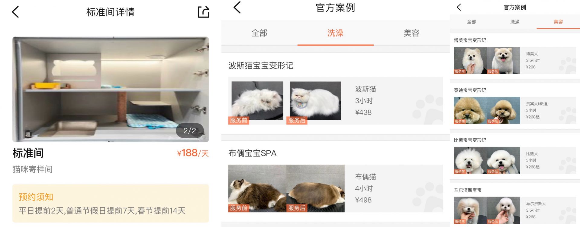 读特新闻记者搜索其所在区域附近的宠物洗护店,不同重量级的猫咪和狗狗,洗澡的价格均在200元以下,护理项目则“丰俭由人”,寄养单间价格在36元/天至148元/天不等。而在泽塔宠物,波斯猫、布偶猫洗澡价格在400元以上,博美、泰迪、比熊等小型犬只洗护价格为268元起,寄养服务则是188元/天。