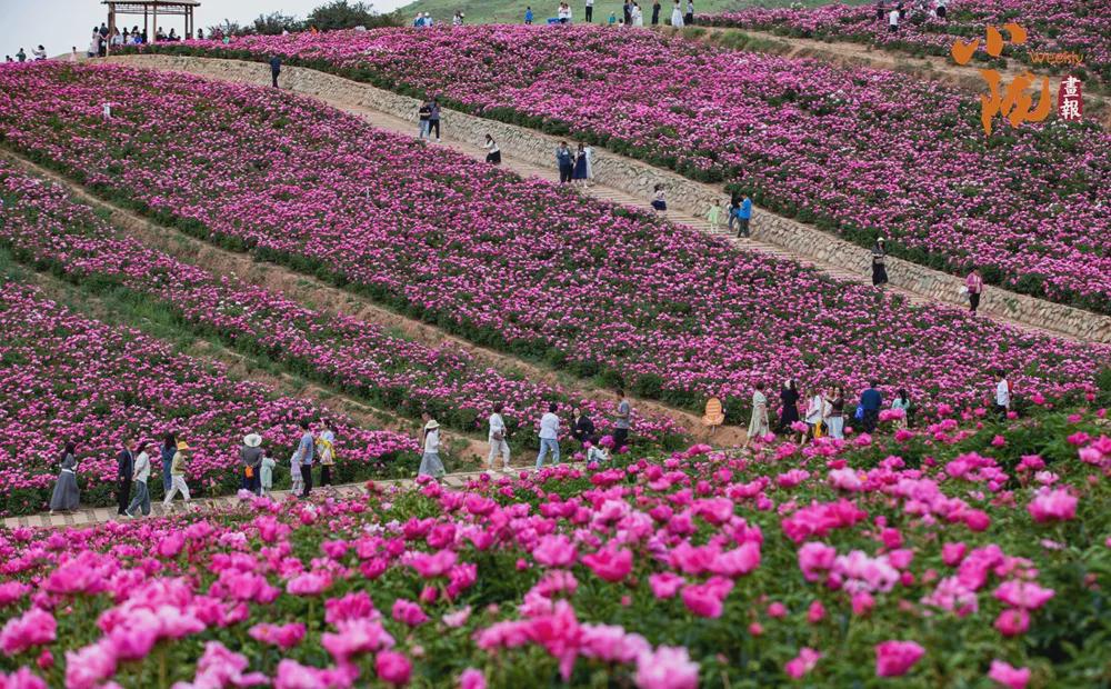 芍药花静静地绽放,风姿绰约,粉红色的花海如给大地披上了艳丽的衣裳,徜徉其中,俯身轻闻花香,让人心旷神怡。
