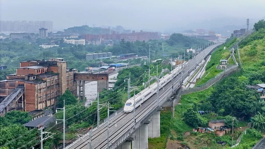 6月21日,重庆,列车行驶在渝昆高铁九龙坡段。