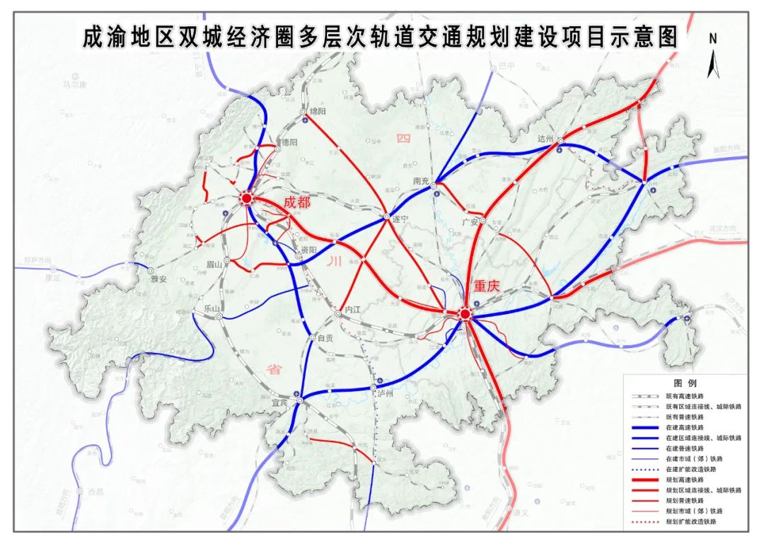 四川高铁建设起步较慢有两个外部因素:先是2008年汶川地震,尔后2011年温州动车“723”事故,全国高铁建设降速,一些线路被降低设计标准,四川最为重要的北上和南下通道西成高铁、成贵高铁就“正好赶上了”,设计时速从350公里降至250公里。2019年以来,特别是成渝地区双城经济圈成为国家战略后,四川高铁建设加速。去年底至今,四川先后开通川青铁路青白江至镇江关段、成自宜高铁、巴南高铁。接下来三年,四川还将开通“成达万、渝昆、成渝中线和西渝”等四条时速350公里的高铁。