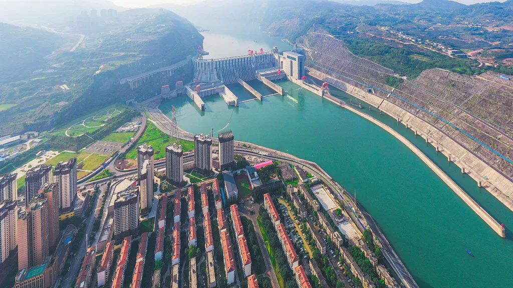 四川宜宾,航拍叙州区向家坝水电站。
