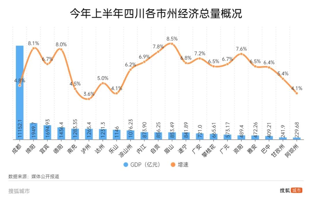 长期以来,成都和重庆主城“两极突出”,对川渝腹地虹吸明显。为破解“一城独大”,四川明确了川北(绵阳)、川南(宜宾泸州)、川东北(南充达州)三个省域经济副中心,其中提出“到2027年,宜宾和泸州两市GDP达到1万亿元左右”。