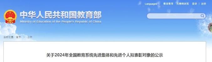 近日,教育部网站公示2024年全国教育系统先进集体和先进个人拟表彰对象,拟表彰全国教育系统先进集体591个、全国模范教师717名、全国优秀教师895名、全国教育系统先进工作者80名和全国优秀教育工作者99名。