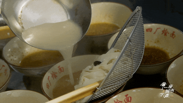烩面的美,需要后天习得:原汤煮面,素、荤、饭、菜、汤一起搭配,面讲究个劲道,汤头要鲜美,要用羊肉、羊骨加入中药材小火慢熬,才能把那点香味全都吊出来;最后是配菜要多:羊肉,鹌鹑蛋,豆腐丝,黄花菜一股脑扔进去,跟着白花花的扯面慢煮,出锅的一瞬间香气四溢,汤鲜、肉嫩,面条在嘴里能蹦出声来。舀上一勺老板自己炸的辣椒,那叫一个香。