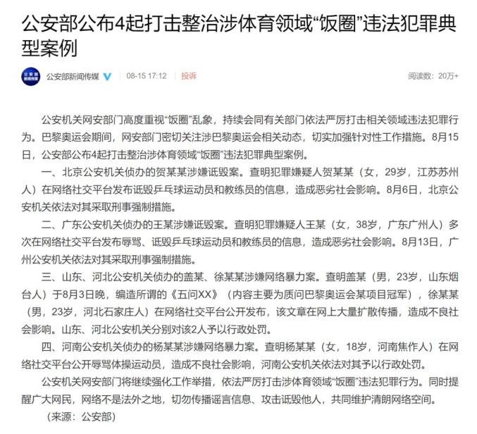 就体育领域的“饭圈”乱象及恶意诋毁、网暴运动员