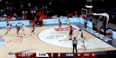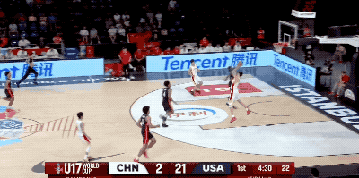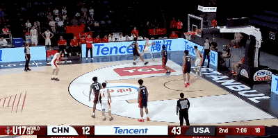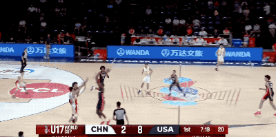 以及对阵美国U17的比赛,张博源唯一的运动战对位进球,也是一个结合无球跑动和假动作晃开防守的中投。