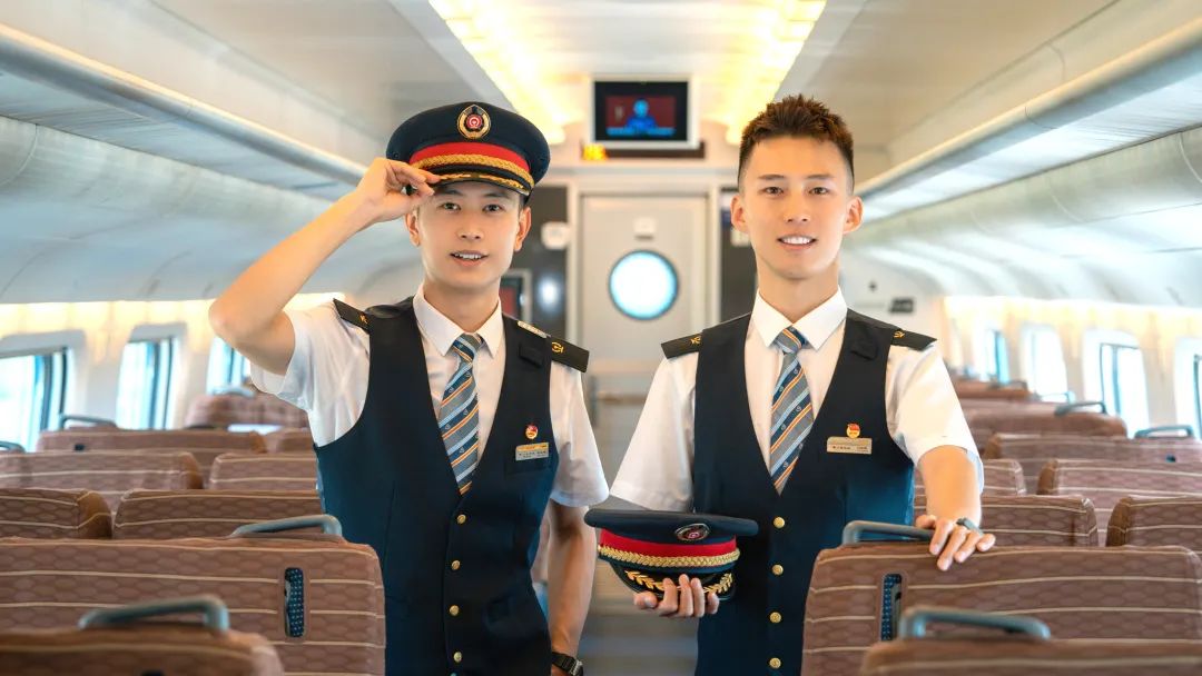 男款制服以白色衬衣搭配藏青色马甲、西裤