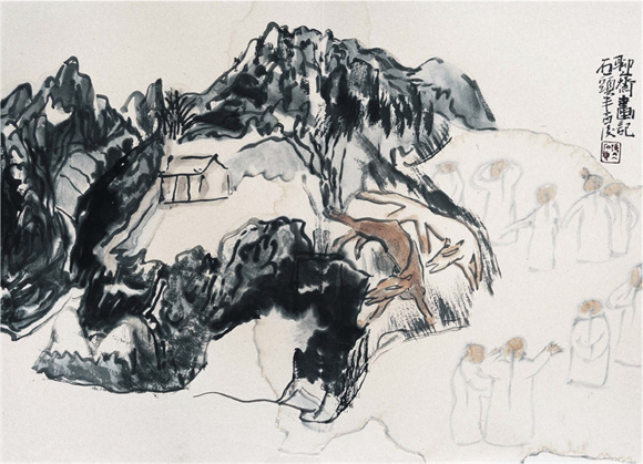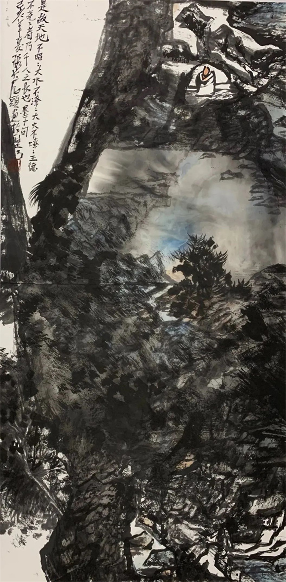 这个开悟的过程,就像张大石头在他一幅作品题跋中的自作诗描述的那种体验:“山雨欲来云动惊,倾听天籁大音声。”倾听心底发出的“大音声”,放下我执,光明澄澈,战胜了自我,也就战胜了敌人。