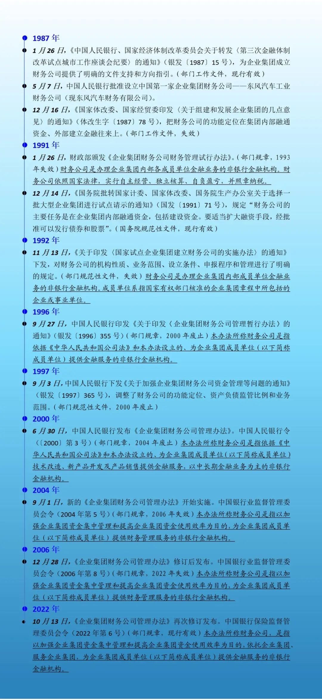 企业集团财务公司是在20世纪80年代伴随国家实施“大公司、大集团”战略而诞生的一类有中国特色的非银行金融机构。1986年之前,我国大型企业内部已经产生一种叫“厂内银行”的融资机构,是企业集团财务公司的雏形。1987年5月7日,我国第一家企业集团财务公司-东风汽车工业财务公司(现东风汽车财务有限公司)经同期监管机构(中国人民银行)批准设立。经过多年的探索和发展,企业集团财务公司已逐步成为具有中国特色的非银行金融机构,是我国金融系统中不可或缺的组成部分。
