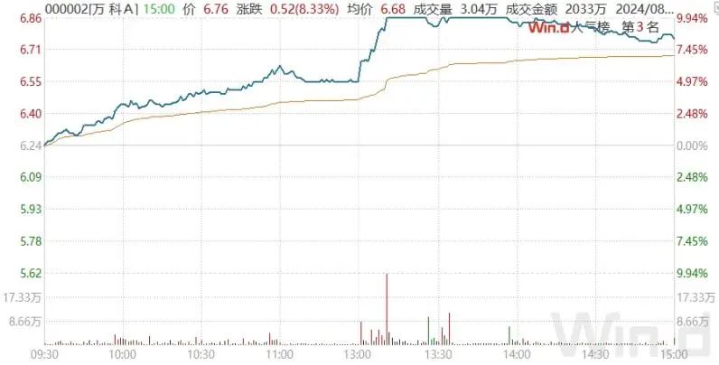其中,板块龙头万科A午后一度涨停,且时隔3个多月后再度涨停。