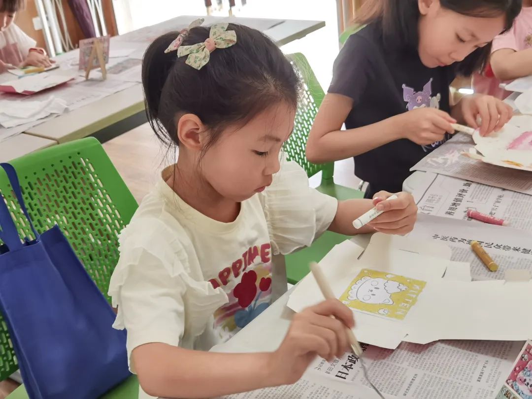 航天新苑居民区开展了“缤纷夏日巧手童玩 油画棒刮画DIY”活动。小朋友们手持五彩斑斓的油画棒,在志愿者老师的悉心指导下,不仅学习了三原色与调色技巧,还通过视频教程掌握了刮画艺术的精髓。