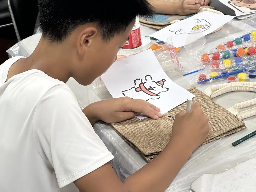 钦北居民区以“美丽‘装’幸福”为主题,举办了彩绘麻布袋手工活动。在老师的启发下,青少年们纷纷拿起画笔,将平凡的麻布袋变成独一无二的艺术品。