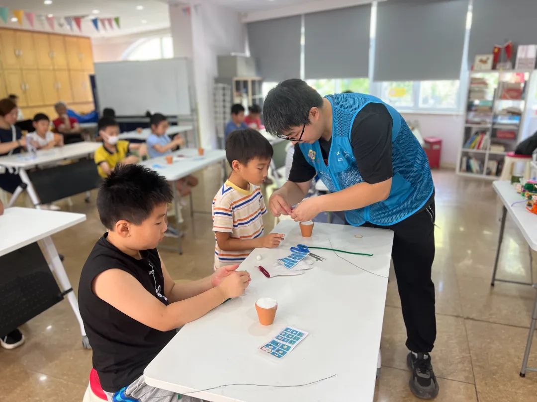 主讲老师以生动的讲解和有趣的互动,引领孩子们探索电的奥秘,从静电现象到摩擦生电,再到多种发电方式的介绍,孩子们听得津津有味。有些动手能力强的小朋友迫不及待地完成后面的步骤,自己一边看说明书一边制作。