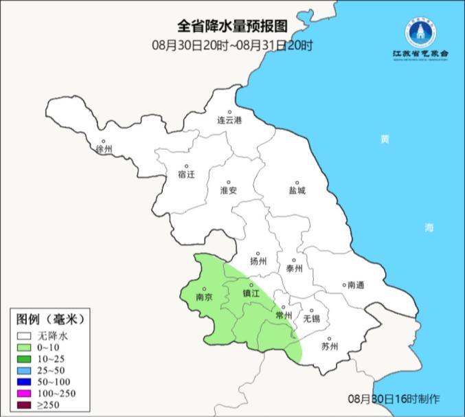 最高温度:沿江和苏南地区33~34℃,其他地区32℃左右;