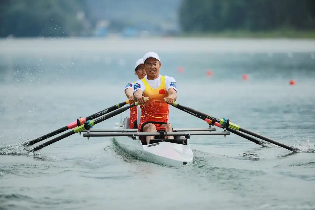 决赛令响,两人便如离弦之箭迅速冲出起始线。比赛中,他们在宽广的水面上挥桨如飞、奋力拼搏,最终凭借默契的配合,获得第二名的好成绩。