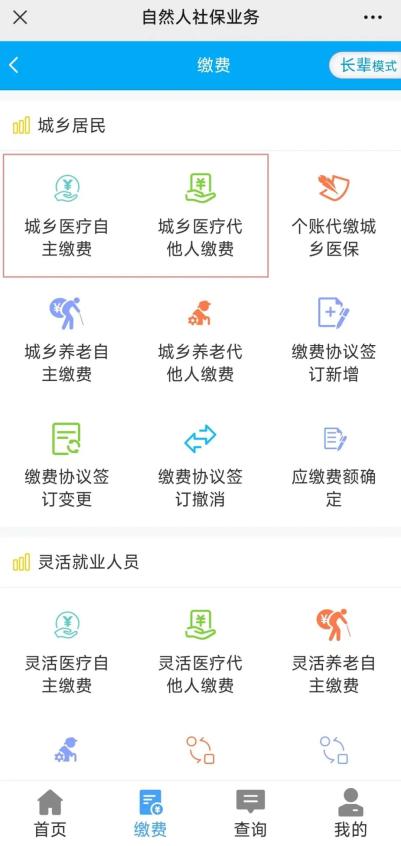 关注“柳州医保”公众号→点击“医保缴费”→点击城乡居民缴费后的“自主缴费”或“代他人缴费”→输入姓名和身份证号→确认险种和缴费年度→选择缴费方式→支付成功。点击下方“柳州医保”公众号名片