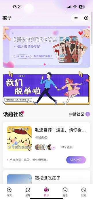 创建一个“手工爱好者”的社区找搭子,寻觅一个年龄相仿的异性好友,报名一场期待相遇的线下交友活动,有疑问还可以找在线客服聊聊……单身青年在平台上活跃起来,秀照片、发动态,“指尖平台”变成了“个人秀场”。