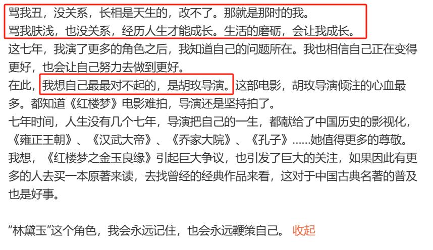 演员也因被质疑「丑」,不得已发博回应。