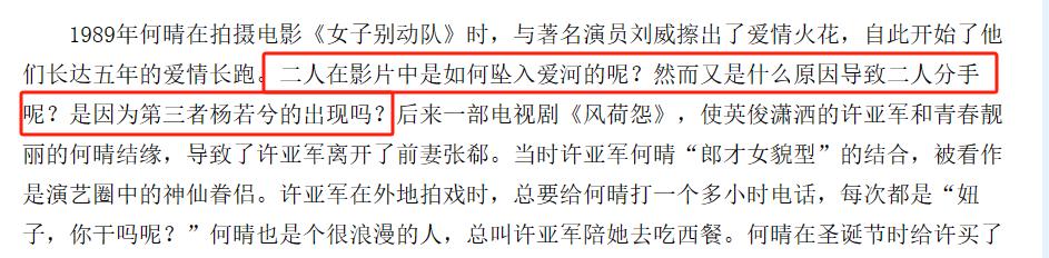 甚至,何晴在拍摄电视剧《风荷怨》时,又与当时的少女偶像许亚军相恋。