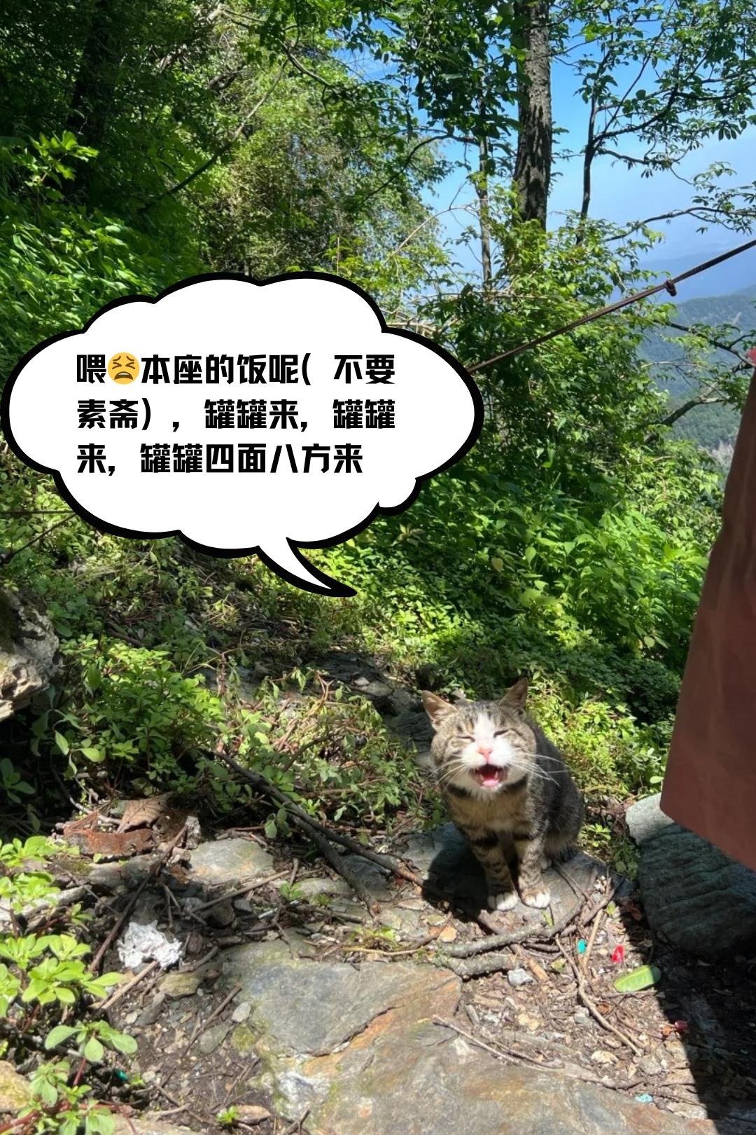 图源/小红书@芜、蹭饭打卡の小A明神古道,几万步的问道祈福台阶,紫霄宫,太子坡沿途,金殿顶峰都有猫咪道长的身影,他们愿意亲近人,友好示人,也会在远处观察人来人往,偷听信徒的心愿,感受着万山来朝、天造玄武的天地之大美。