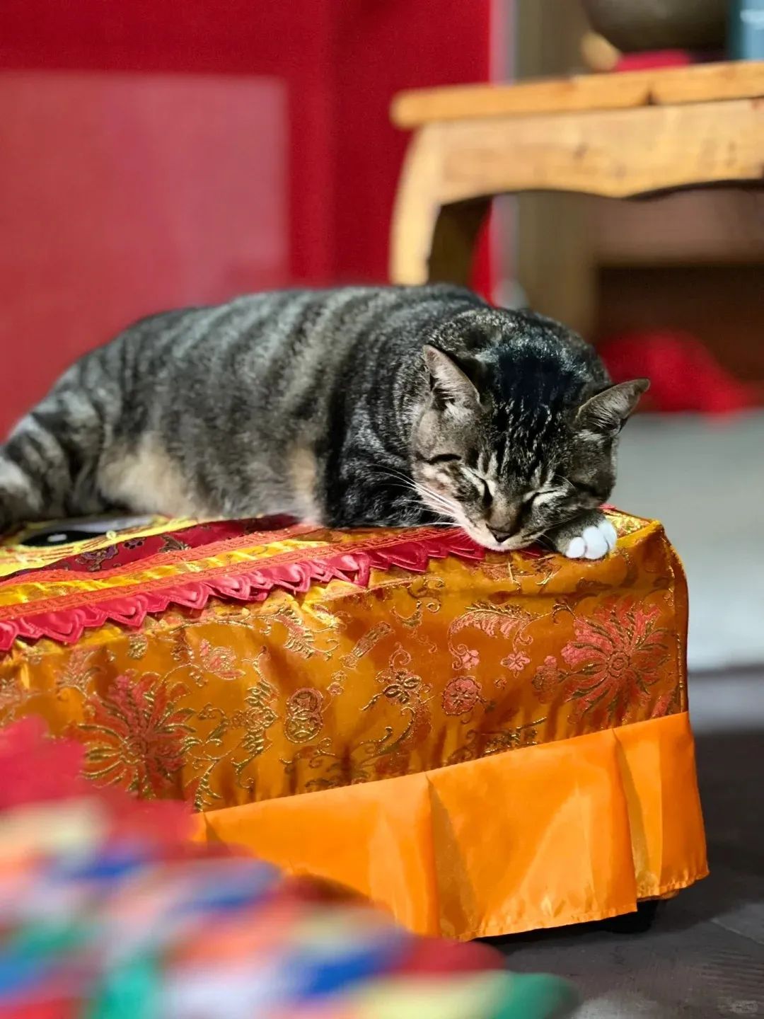 图源/武当山官方旅游本就带着些神秘气质的猫,在武当山中修行久了,受到师父们的和善相待,适应了香火的味道,仿佛也渐渐沾染了些神性。