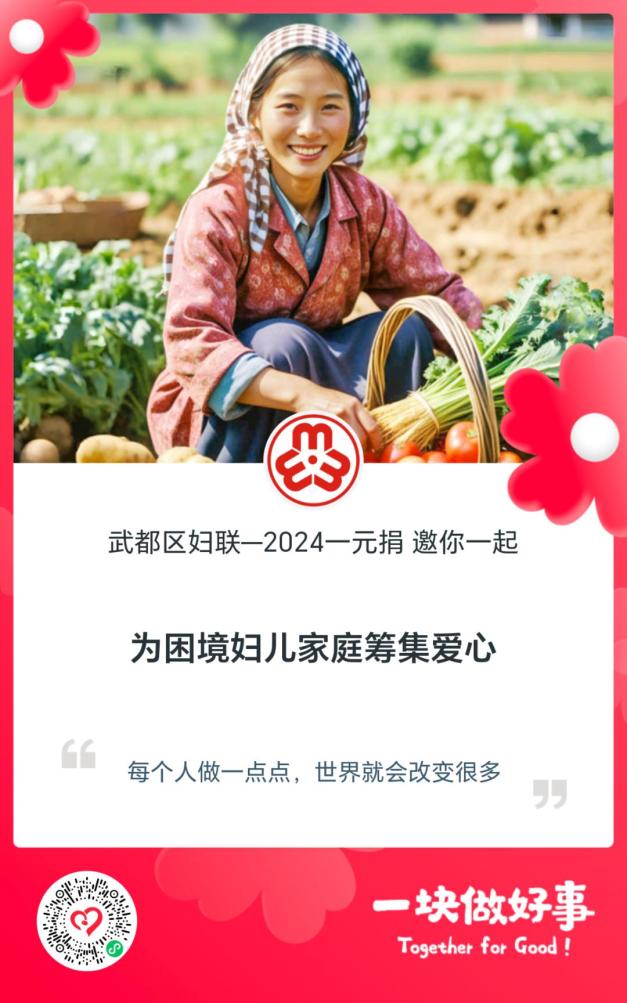 武都区妇联“家家幸福一元捐”倡议书