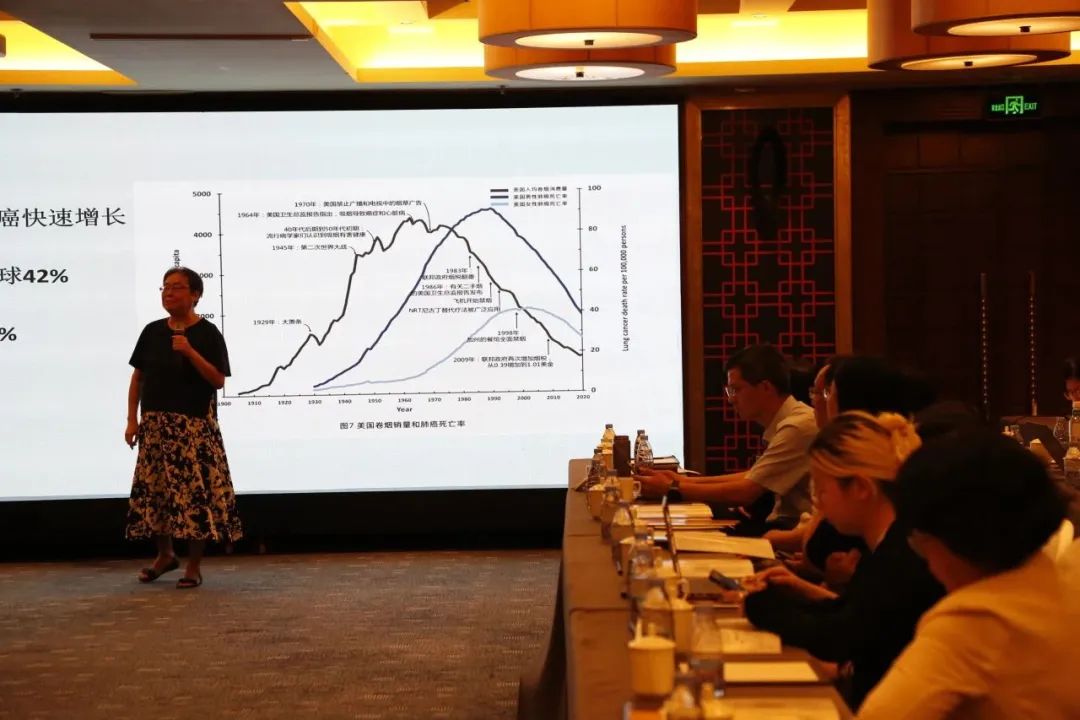 支教授介绍并呼吁:“1964年第一份《美国卫生总监报告》发布,主题为“吸烟与健康”,被誉为是推动烟草控制工作的里程碑。之后美国政府出台了一系列控烟法令,包括在公共场所禁止吸烟、禁止烟草广告、提高卷烟税率,日人均烟草消费量一路下降,2020年美国人群卷烟消费水平回到了100年前的1920年,美国烟草流行从总监报告发布后,政府采取了一系列措施,和烟草流行情况相一致的是,25年后美国肺癌流行也进入拐点。希望我们能够采用综合措施遏制中国烟草流行,使肺癌发病死亡尽快进入拐点” 。
