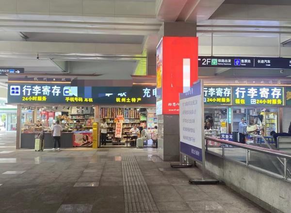 在杭州城站火车站的地铁站点地面一层,有不少私人行李寄存点。澎湃新闻记者扫描地铁站寄存柜上小程序的二维码发现,除了地铁站,该小程序还推荐了杭州其他数十个行李寄存点,集中分布在西湖区地铁站点沿线,寄存点的地址包括便利店、茶叶店、商场等地。小程序页面显示,背包寄存价格10元/天,行李箱寄存20元/天,营业时间各不相同。通过小程序,记者搜索到杭州火车站地面一层的寄存点,并通过现场走访发现,那里有不少私人开设的行李寄存处,这里不仅可以通过小程序存行李,还可以同老板私下交易,价格能比小程序上更便宜,行李箱只要15元/天,还有些存放点甚至只要10元/天,并且24小时营业,随时可存取。