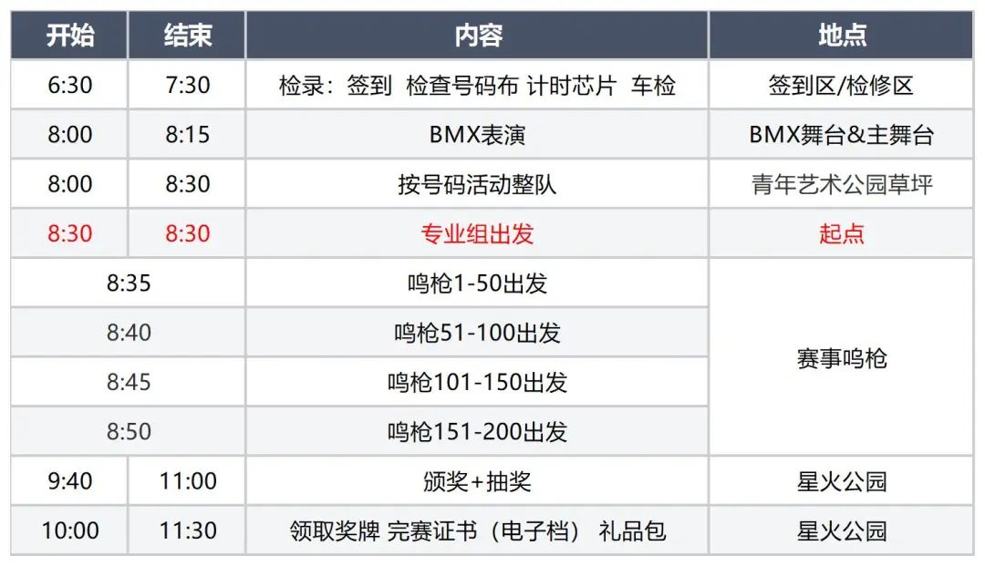 *所有骑手结束骑行后需前往海湾镇星火公园参加颁奖仪式并领取赛事包及奖品。
