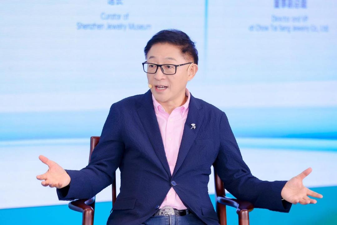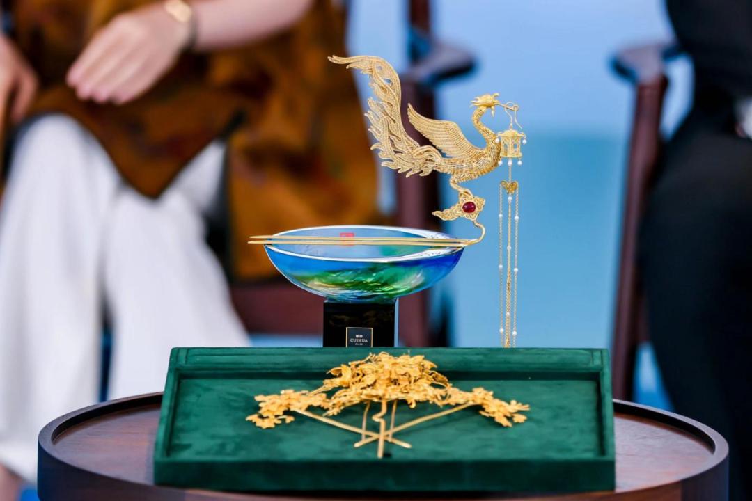 由深圳市商务局等主办的全媒体大型政企对话节目《湾区面对面:从水贝走向世界!中国黄金珠宝产业再迎新机遇》对话现场金秋深圳,“金色引擎”已全部就绪,一触即发。深圳市罗湖区委常委、区委(政府)办主任赖建华,深圳市萃华珠宝首饰有限公司首席设计师、设计总监郭夷锬,深圳珠宝博物馆馆长王振,周大生珠宝股份有限公司董事副总裁郭晋,以及深圳市黄金珠宝文化研究会会长曹阳齐聚深圳含“金”量最高的水贝产业园区,进行了一场别开生面的政企对话,现场3件精美绝伦的黄金宝物,透视了中国黄金珠宝产业发展的新未来、新机遇。