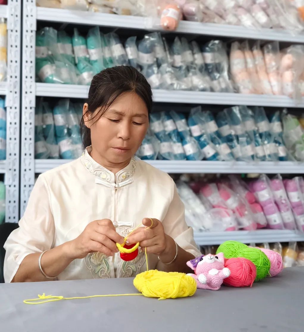 真真(化名)是一名99年的女孩,从小患有侏儒症,身高问题一直是她求职的“难言之痛”。或许因为20多年来身边太多异样的眼光让她早已习惯,第一次来到黄燕的工作室学艺,真真显得不自信,浑身充满了戒备。黄燕像对待其他学员一样,耐心细致地讲解每一步钩针的技法,有问一一答、有难一一解,不藏私不区别,“在我这从来没有不传绝学,只要学员想学,再难的针法我都愿意教”。真真内心的渴望就是这样一份不区别、不异样,在她看来,黄燕的授艺过程全是实操,可复制性很强,每个月学员交货的作品都是黄燕的样本复刻品,“她希望我们做得比她好,这样成品不用再返工,销量会更好。”