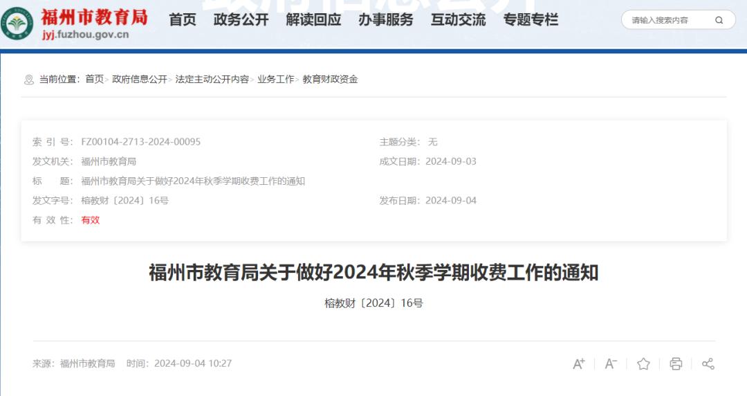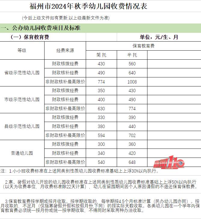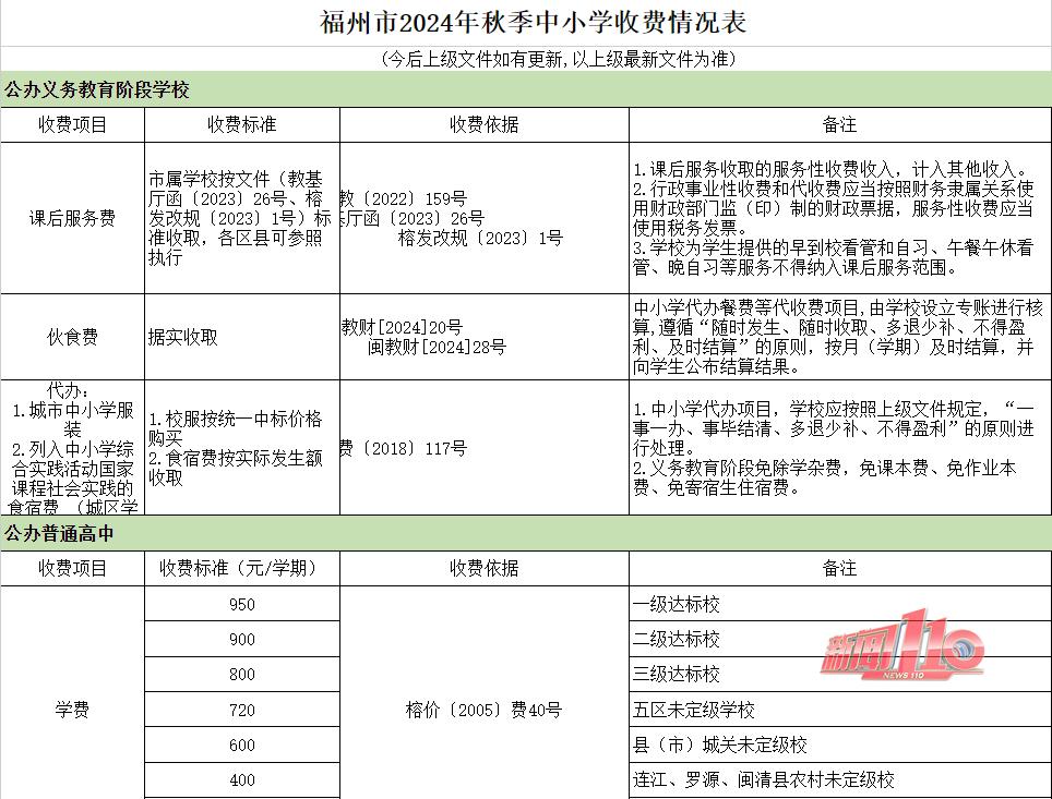 原标题:《最新!福州公布2024秋季幼儿园、中小学收费标准》