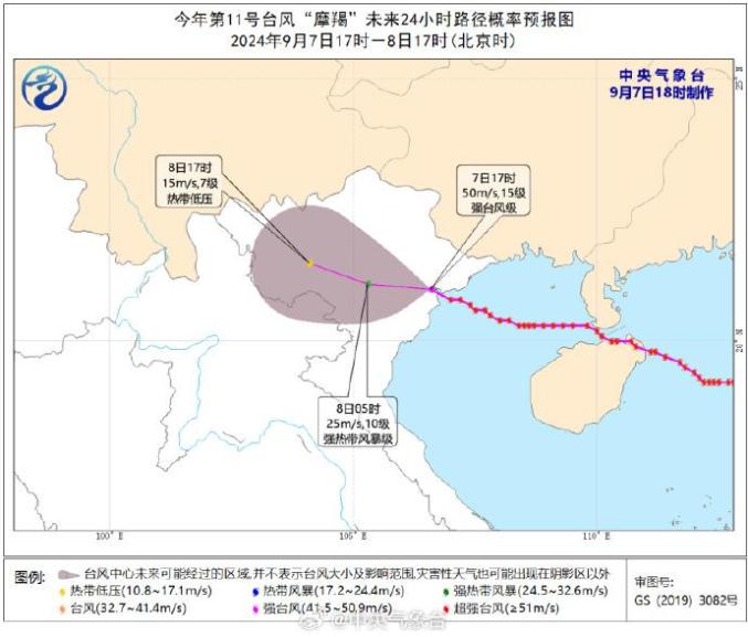9月7日,据中央气象台,今年第11号台风“摩羯”已于7日下午3点30分前后在越南广宁省南部沿海登陆,登陆时中心附近最大风力有17级(58米/秒,超强台风级),中心最低气压为925百帕。随后“摩羯”减弱为强台风级,下午5点钟其中心位于越南海防市境内,就是北纬21.0度、东经106.6度,中心附近最大风力有15级(50米/秒,强台风级),中心最低气压为940百帕。