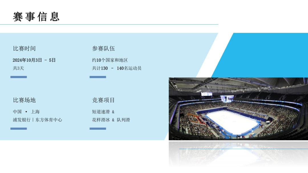 赛事将包括短道速滑、花样滑冰和队列滑3个比赛项目。