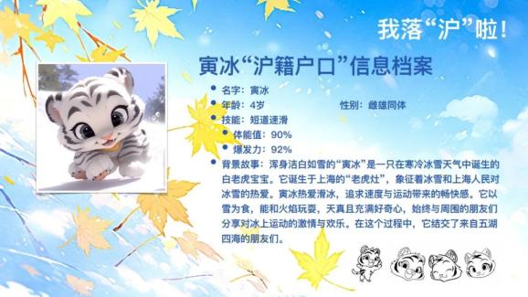 赛事首次迎来吉祥物“寅冰”——一只小白虎。“沪-虎”谐音,象征着这只小白虎是上海人民对冰雪运动热爱而孕育出的“冷热皆通的海派瑞兽”;“寅冰”又有“迎宾”的谐音,其身上的纹理代表着它继承的海纳百川的文化,而其整体形象则体现了与时代接轨,保持好奇、有闯劲、迎接八方来宾的友善,也代表上海为中国的冰雪体育事业做贡献的初心。