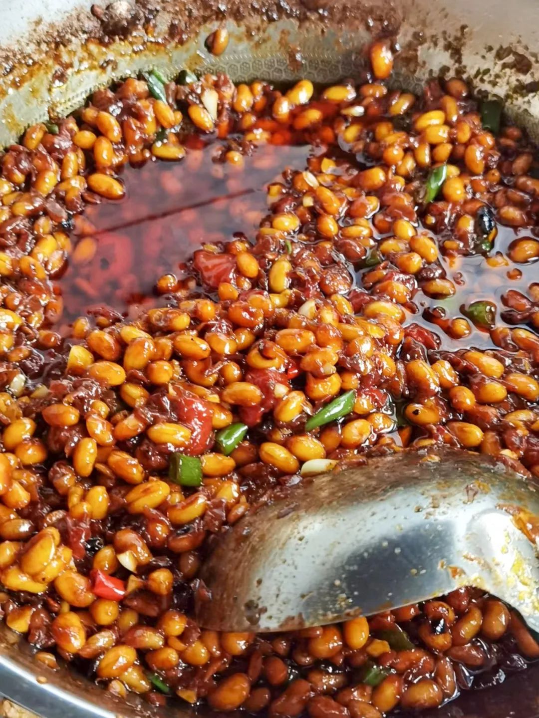 大约半个月左右,西瓜酱便可晒成。成品的西瓜酱,呈现出一种好看的酱红色,黄豆颗粒饱满,却似乎溢着西瓜的汁水,大块的瓜瓤隐约可见,却已辨不出原本的模样。等到西瓜酱晒成,奶奶往往会蒸上一锅馒头,颇有些为了一瓶醋包顿饺子的劲头。
