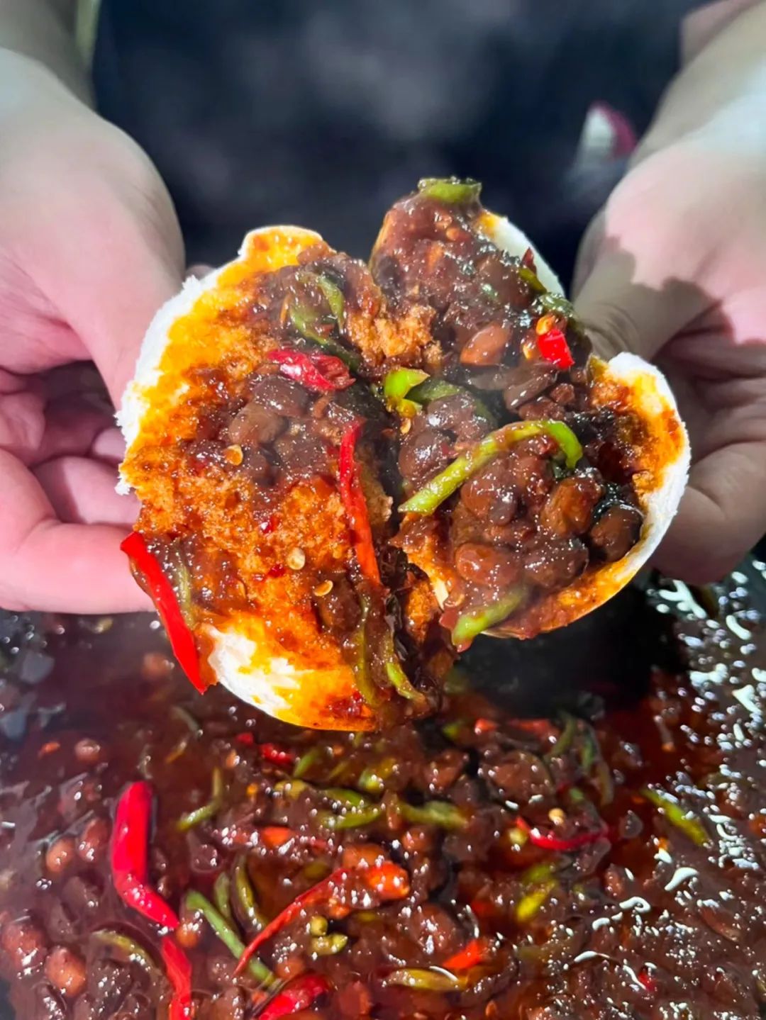 有西瓜酱,就得有馒头。在河南,蒸馒头是件“事儿”,需要号召全家来吃的那种。尤其是秋老虎那阵子,气温总在34、5度下不来,奶奶就会起个大早,和面、发面、揉面、上锅蒸一通忙活。待馒头的香味溢出,她会把看锅的任务交给我,自己从酱缸里舀一碗西瓜酱出来,加上大葱、青红辣椒爆炒——油润的亮光窜出浓郁的香味,略带厚重的酱香,飘出清甜的余味,味道直勾勾的,不加丝毫掩饰。