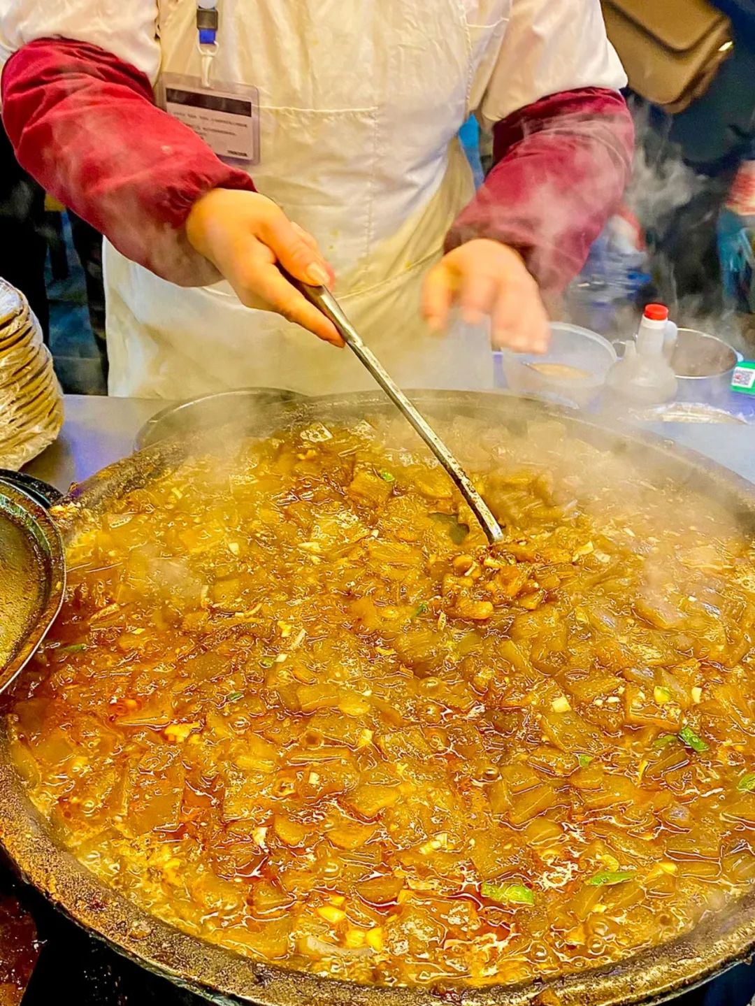西瓜酱拌面,是河南的另一种寻常吃法。煮好的挂面无需添加任何佐料,仅一勺西瓜酱,便能吊出面食独有的的醇厚口感。吃完拌面,续上一碗面汤,再坎坷的日子也能熨帖片刻。还有开封炒凉粉,在河南小吃届驰骋多年,凭的就是滑嫩不碎的凉粉,和味道独特的西瓜酱。手工打的开封凉粉,外观是透明的琥珀色,碰一下弹弹的,有种果冻的质感。不同于其他地方的炒凉粉,开封炒凉粉虽然也使用葱姜提味,但一勺西瓜酱的加入,让凉粉的味道多了一抹清甜。在热油的催逼下,凉粉儿滋滋作响,西瓜酱也顺势融入其中。用锅盖盖住闷少许,黄豆酱的浓郁酱香,西瓜的清香微甜,悉数缱绻渗入到凉粉之中,出锅前再铲一勺焦脆的锅底锅巴,软绵q弹又香脆的酱香滋味,可以让我灵魂跳舞。