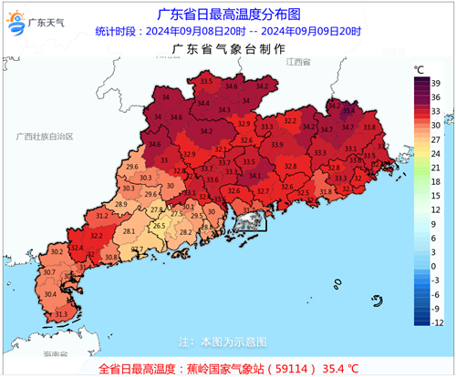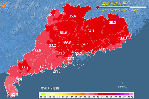 天气实况:9日白天到10日早晨,我省大部分市县出现中雷雨,局部出现了暴雨或大暴雨;最高气温发布:粤北、珠三角中北部以及粤东的北部市县介于33℃~35℃,其中梅州蕉岭录得全省最高气温35.4℃。